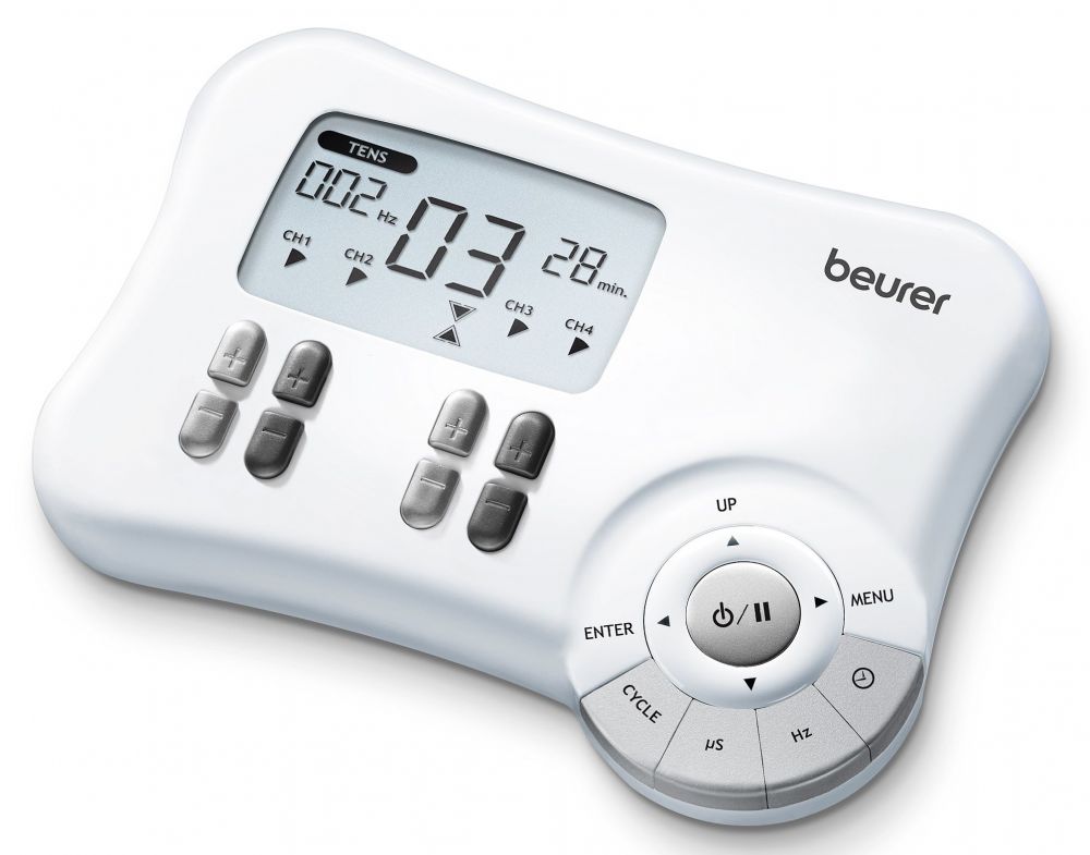 Описание: «3 в 1»: TENS (нервы, боль), EMS (мышцы), массаж (расслабление). Четыре отдельно регулируемых канала с восемью самоклеющимися электродами. 30 запрограммированных применений (TENS/EMS/массаж). 20 свободно конфигурируемых программ (TENS/EMS).