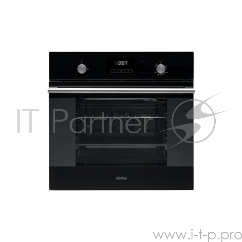 Встраиваемые газовые духовки Korting Crystal, 59.7 х 59.6 x 56.5, газовая, газовый гриль, конвекция, дисплей Cold White с сенсорным управлением, газ-контроль, электроподжиг, телескопические направляющие на 1 уровне, черная
