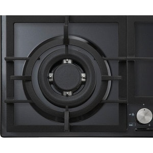 Встраиваемые газовые панели Korting Crystal, 60x51 см, газовая, независимая, электроподжиг, газ-контроль, чугунные решетки, в комплекте - подставка WOK и адаптер для кофейника, цвет-матовый черный