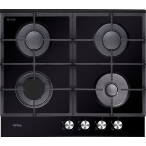 Встраиваемые газовые панели Korting Crystal, 60x51 см, газовая, стеклокерамика, независимая, электроподжиг, газ-контроль, чугунные решетки, черная