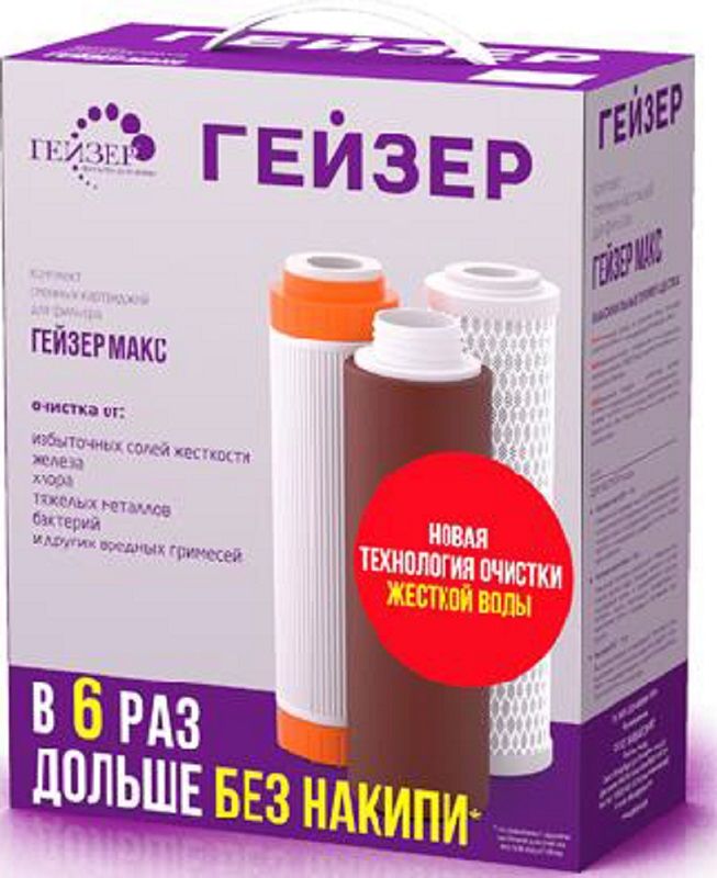Описание: МАКСимальный эффект 12 месяцев работы. МАКСимальный ресурс по умягчению. МАКСимальная экономия. МАКСимальная польза. Предназначен для замены исчерпавших свой ресурс картриджей в стационарных трехступенчатых фильтрах для сверхжесткой воды.