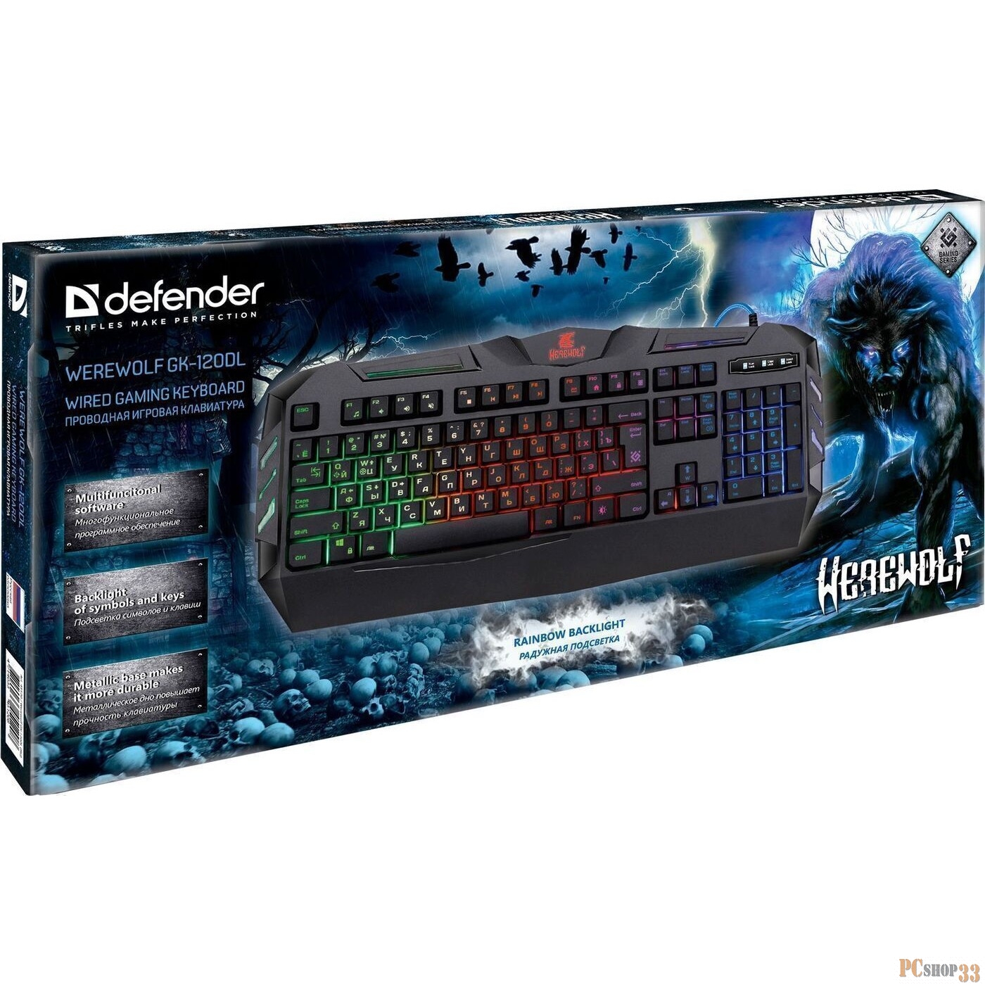[Клавиатура] Defender Клавиатура Werewolf GK-120DL RU [45120] {Проводная игровая, RGB подсветка,19 Anti-Ghost}