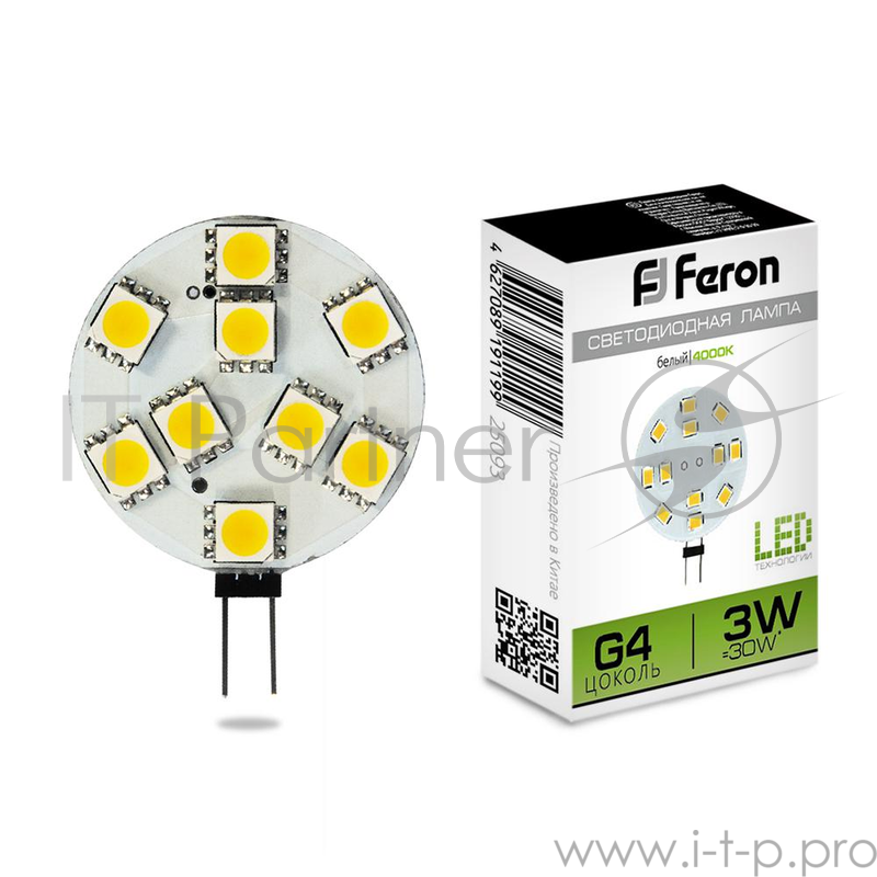 Лампа светодиодная FERON 25093 (3W) 12V G4 4000K, LB-16