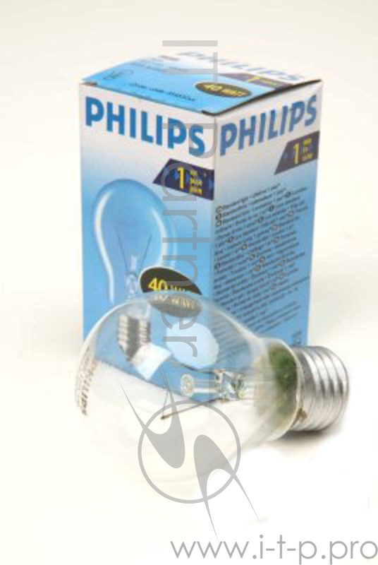 Лампа накаливания PHILIPS A55 40W E27 CL груша прозрачная