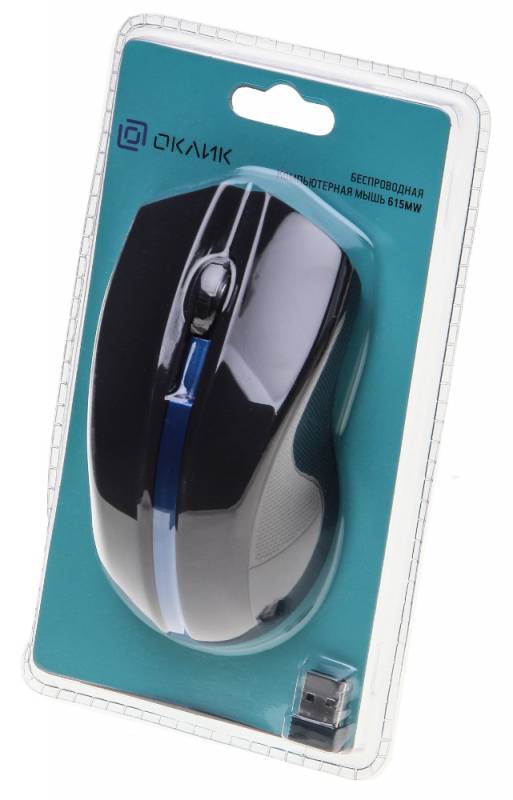 Мышь Oklick 615MW черный/синий оптическая (1200dpi) беспроводная USB (2but) 412862