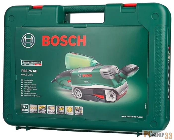 Bosch PBS 75 AE Ленточная шлифовальная машина [06032A1120] {750 Вт, 350 м/мин, ширина ленты 75 мм, 3.5 кг}