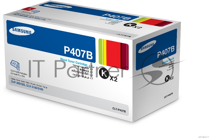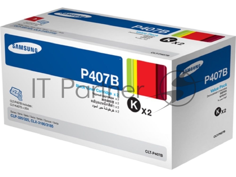 Тонер Картридж Samsung CLT-P407B SU385A черный x2уп. (1500стр.) для Samsung CLP-320/325/CLX-3185