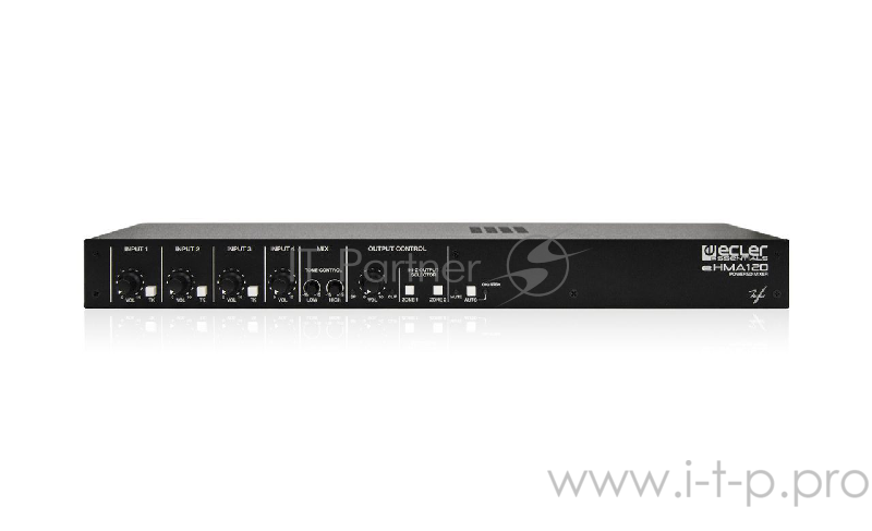 Микшер-усилитель ECLER [eHMA 120] 3x MIC/LINE ST входа, 1 LINE ST вход. 1x 95Вт 4ом/70 100V. 3 уровня приоритетов (голосовые сообщения, система аварийного оповещения), пейджер и встроенная функция звуковой сигнализации (совместим с MPAGE1), MUTE