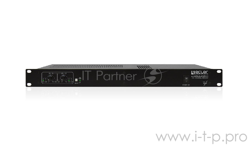 Усилитель ECLER [eHSA2-150] 2 канальный, высоковольтный, 2х150Вт, 2 моно балансных входа, защита от перегрева и перегрузок, система anti-clip, функция auto stand-by, бесшумный