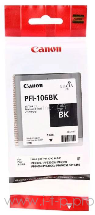 Картридж струйный Canon PFI-106 BK черный для iPF6300S/6400/6450 (6621B001)