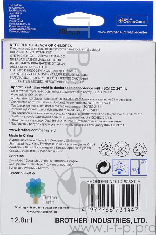 Картридж струйный Brother LC525XLY желтый для Brother DCP-J100/J105/J200 (1300стр.)