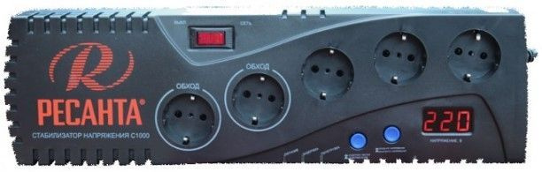 Ресанта Стабилизаторы напряжения Ресанта С-1000 63/6/32 Стабилизатор {5 розеток -(3/2), 750 Вт, 220В±8% + защита RJ11, Вес 2,5 кг} 16670