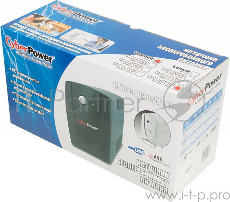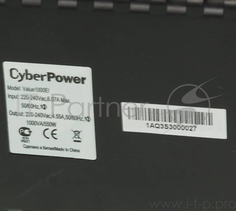 ИБП UPS CyberPower V 1000EI-BLACK VALUE1000EI(B) {1000VA/550W USB/RS-232/RJ11/45 (3 IEC)}