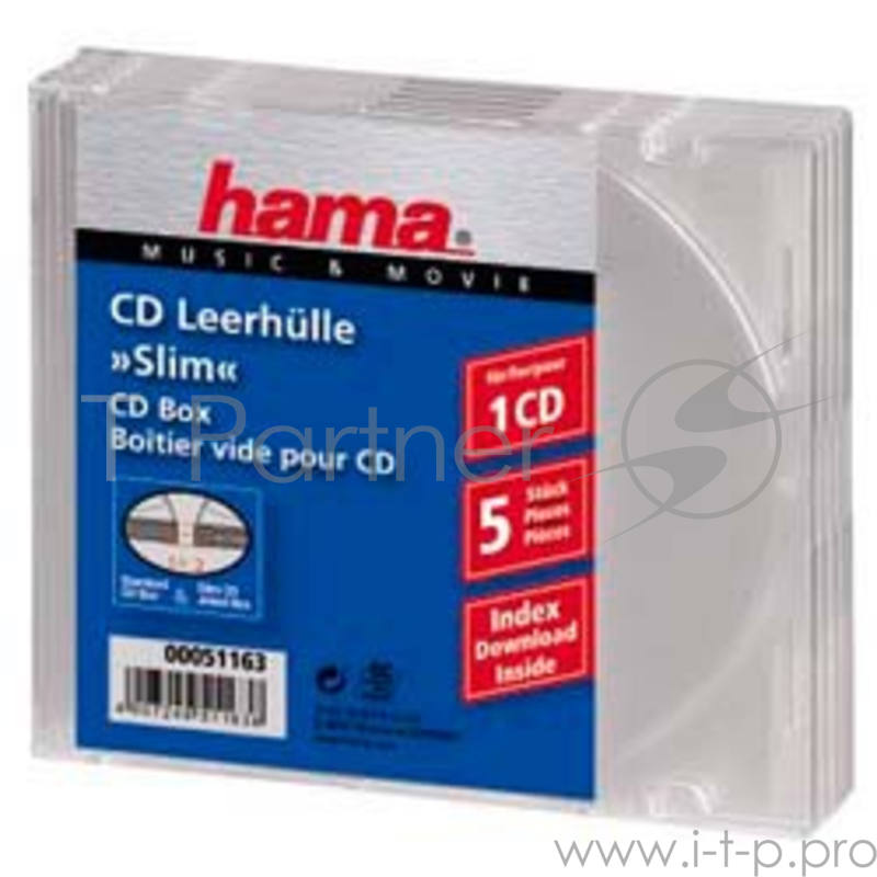 Конверт HAMA Коробка для 1 CD slim, прозрачный, 5 шт. H-51163