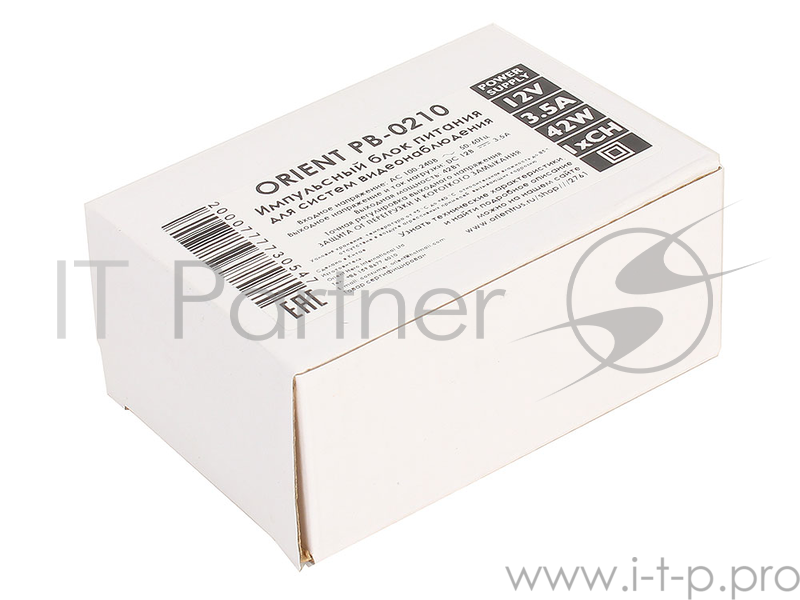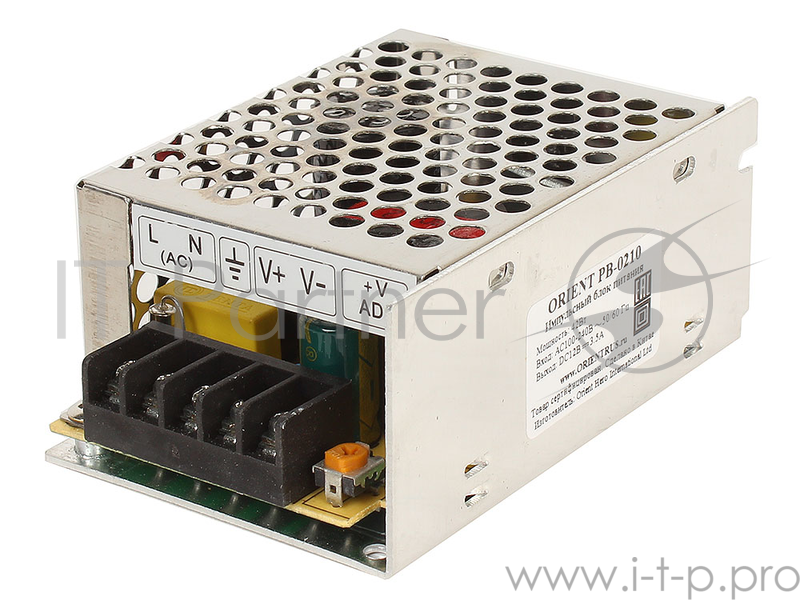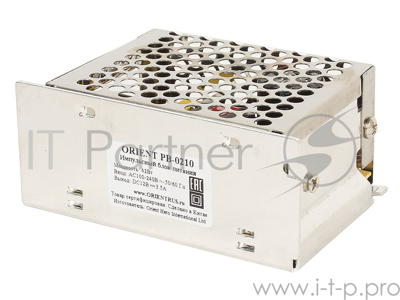 Блок питания ORIENT PB-0210 Импульсный блок питания, AC 100-240V/ DC 12V, 3.5A, стабилизированный, защита от КЗ и перегрузки, ручная рег-ка Uвых, винт