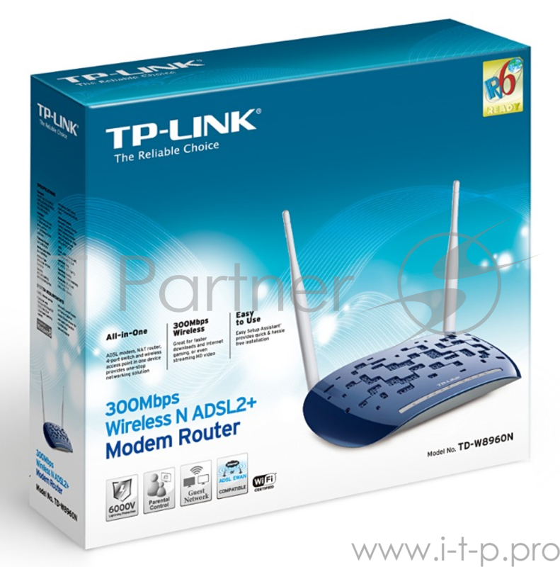 Сетевое оборудование TP-Link SOHO TD-W8960N Роутер 300M Wireless ADSL2+ router, 4 ports, 2T2R
