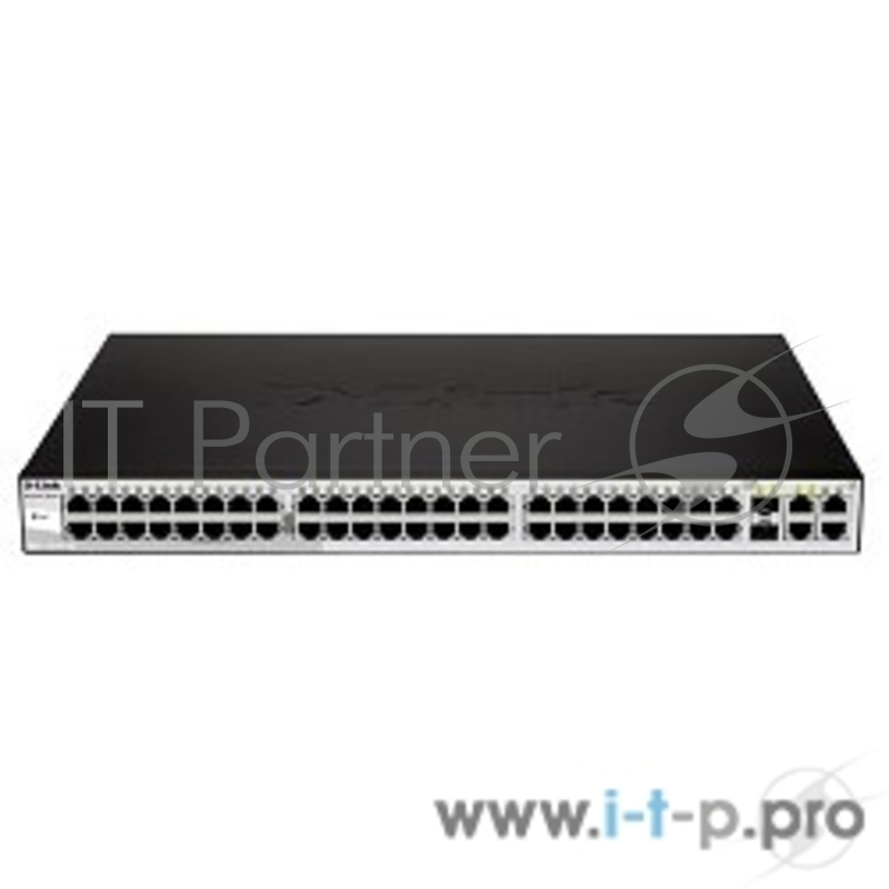 Сетевое оборудование D-Link DES-1210-52/B1A/E/C1A Настраиваемый коммутатор WebSmart с 48 портами 10/100Base-TX, 2 портами 10/100/1000Base-T, 2 комбо-портами 100/1000Base-T/SFP