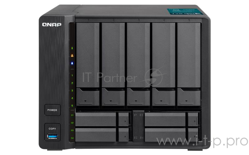 Сетевое хранилище без дисков SMB QNAP TVS-951X 9-Bay NAS, Intel Celeron 3865U dual-core 1.8 GHz , 2GB DDR4 (1 x 2GB) SODIMM RAM ( 2 slots, max 32GB), 5 x 3.5" and 4 x 2.5" drive slots, 1 x 10GbE NBASE-T LAN, 1 x GbE LAN, 1 x HDMI v1.4b, 3 x USB 3.0