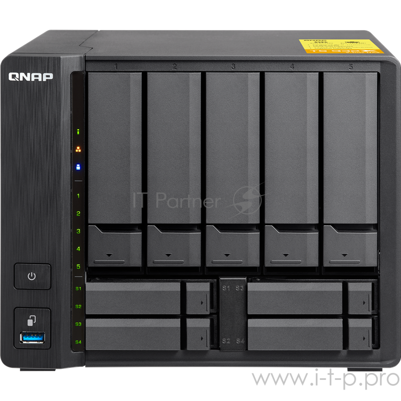 Сетевое хранилище без дисков SMB QNAP TS-932X-2G 9-Bay NAS, AL324 64-bit quad-core 1.7GHz, 2GB DDR4 SODIMM RAM (1 x 2GB, max 16GB), 5 x 3.5" and 4 x 2.5" drive slots, 2 x 10GbE SFP+ LAN, 2 x GbE LAN, 3 x USB 3.0, hardware encryption, Built-in speaker