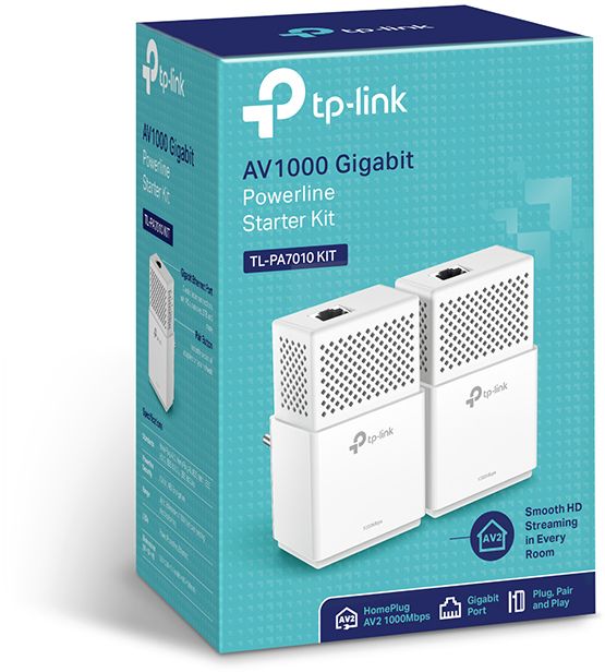 Адаптер TP-Link Адаптер Powerline Ethernet TL-PA7010KIT, 1000 Мбит/с, Gigabit Ethernet, 2 шт в комплекте