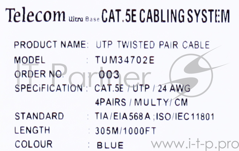 Кабель "Telecom Ultra" UTP кат.5е многожильный (бухта 305м), синий p/n: TUM34702E-BL/TUM34102E-BL