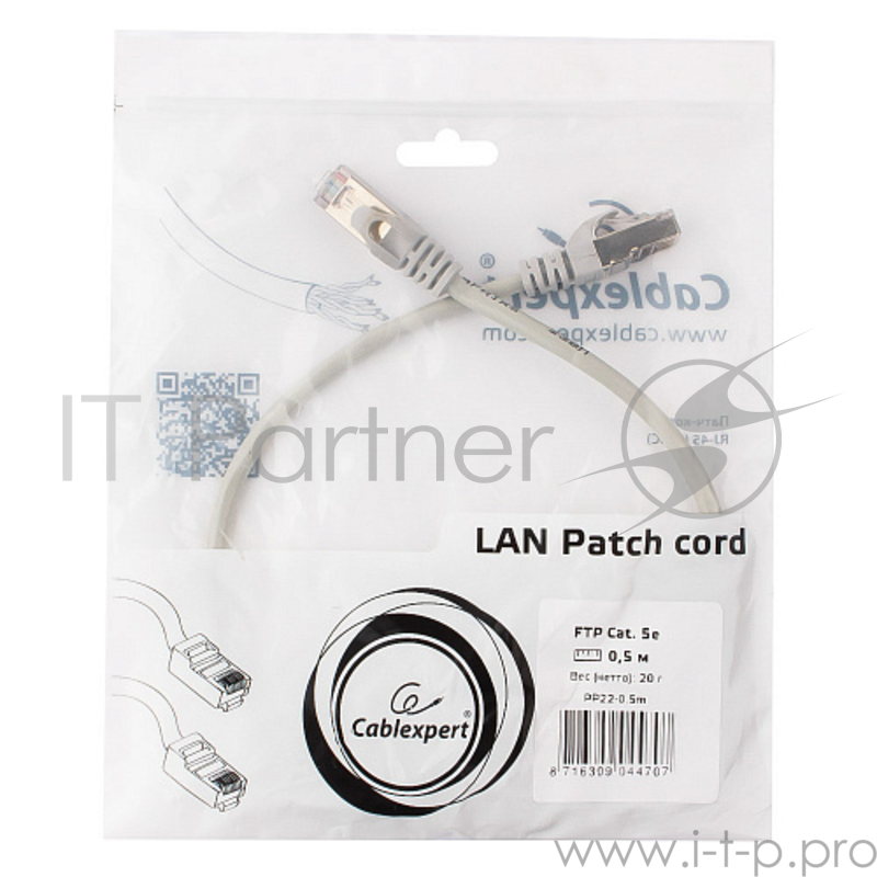 Патч-корд FTP Gembird PP22e-0.5m кат.5e, 0.5м, литой, многожильный