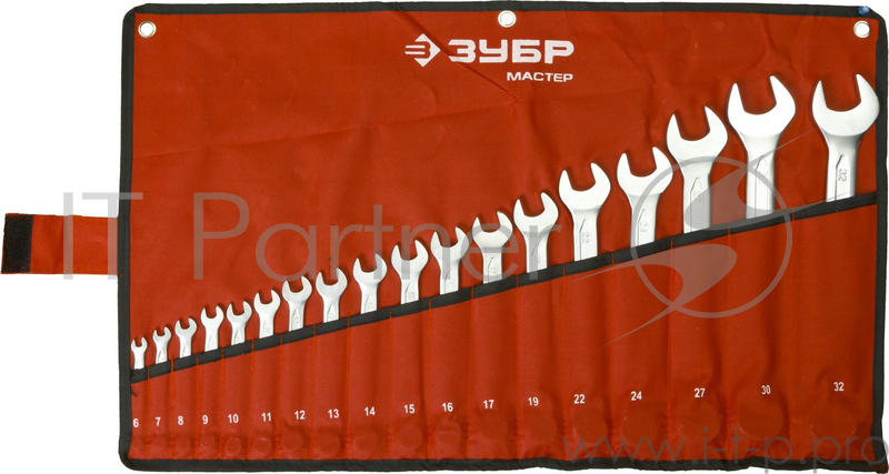 Ручной инструмент Набор ЗУБР "МАСТЕР": Ключ гаечный комбинированный, Cr-V сталь, хромированный, 6-32мм, 18шт 27087-H18