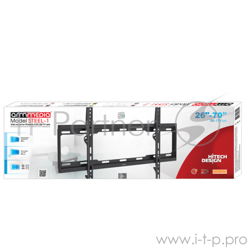 Кронштейн Arm media STEEL-1 black, настенный для TV 32"-90", max 60 кг, 0 ст св., от ст. 21,5 мм, max VESA 600x400 мм.