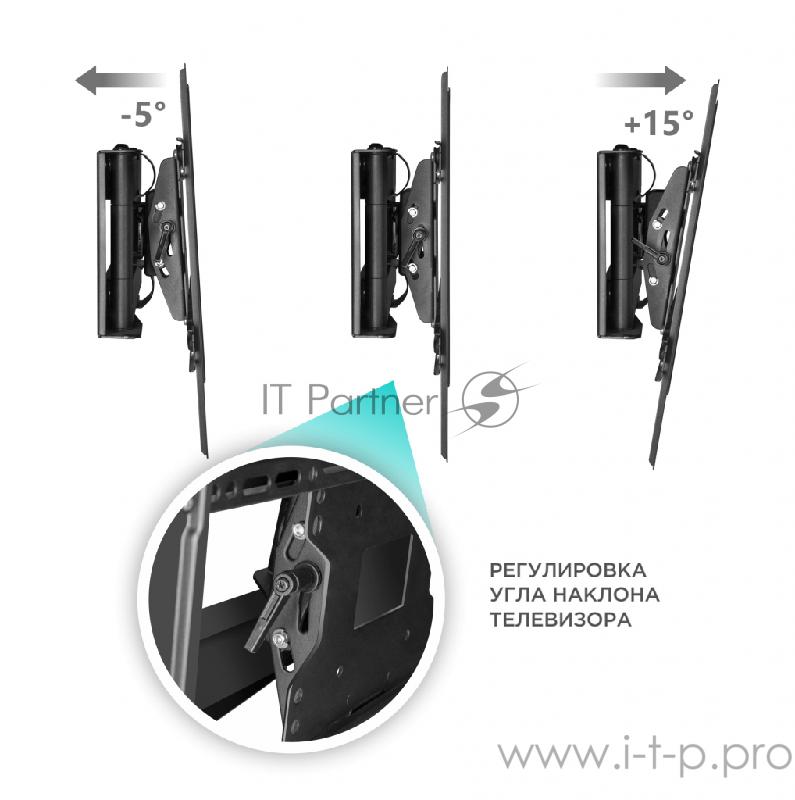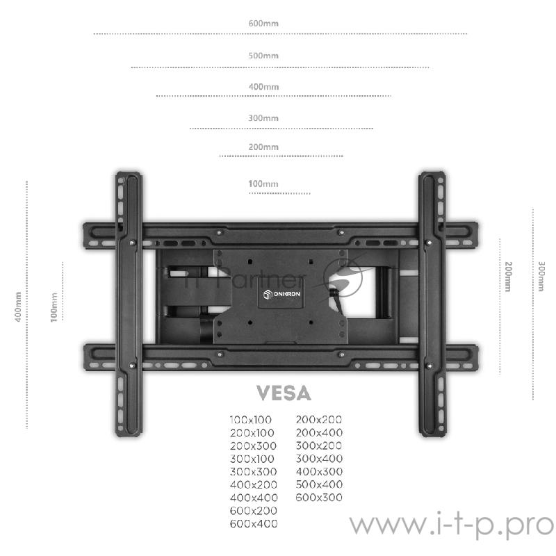 Кронштейн ONKRON Кронштейн ONKRON/ 40-60" макс 400*600 наклон -5°/+15° поворот ±180° Макс нагрузка 68,2кг, от стены 110-711мм