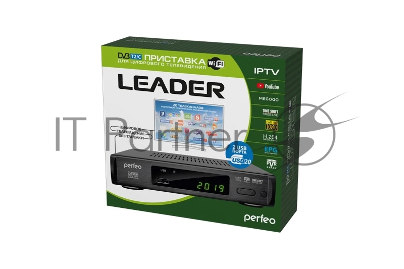 Приставка Perfeo DVB-T2/C "LEADER" для цифр.TV, Wi-Fi, IPTV, HDMI, 2 USB, DolbyDigital, пульт ДУ