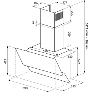 Вытяжка Kuppersberg F 630 B, ширина 60 см, отвод/рециркуляция, 850 м3/час, электронное сенсорное управление, таймер, 5 скоростей, светодиодное освещение 2х2 Вт, металлические жироулавливающие фильтры, угольный фильтр KF-ES (опция), 42-58 дБ, система