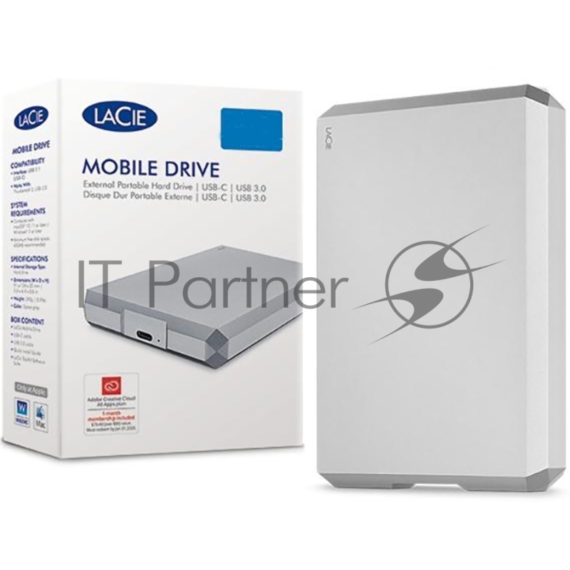Накопитель на жестком магнитном диске LaCie Внешний жесткий диск LaCie STHG4000400 4TB LaCie Mobile Drive 2.5" USB 3.1 TYPE C Moon Silver