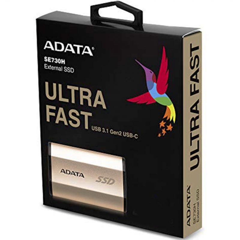 Накопитель SSD внешний 1.8"" 512GB ADATA SE730H External SSD ASE730H-512GU31-CGD USB 3.1 Gen 2 Type-C, 500/500, 3D NAND TLC, IP68, Gold, Retail