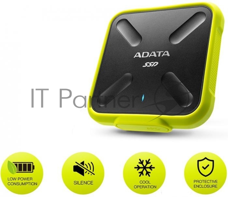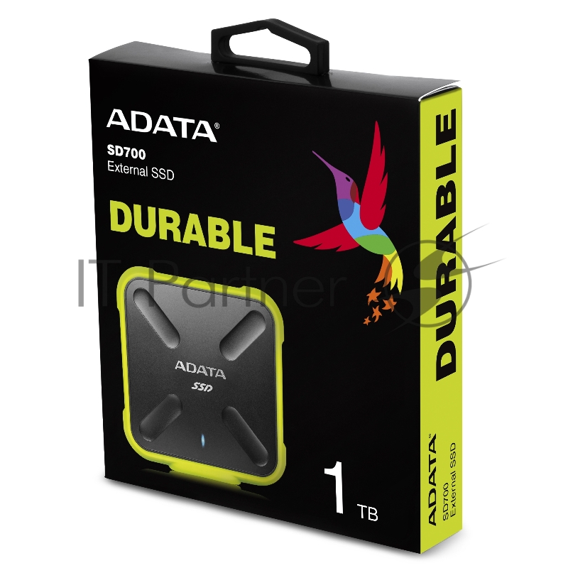 Внешний твердотельный жесткий диск 3.3" 1TB ADATA SD700 External SSD ASD700-1TU31-CYL USB 3.1 Gen 1, 440/440, MTBF 2M, 3D V-NAND TLC, 800TBW, DWPD, IP68, Yellow, RTL