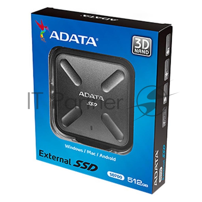 Твердотельный диск 512GB A-DATA SD700, External, USB 3.1, [R/W -440/430 MB/s] 3D-NAND, черный