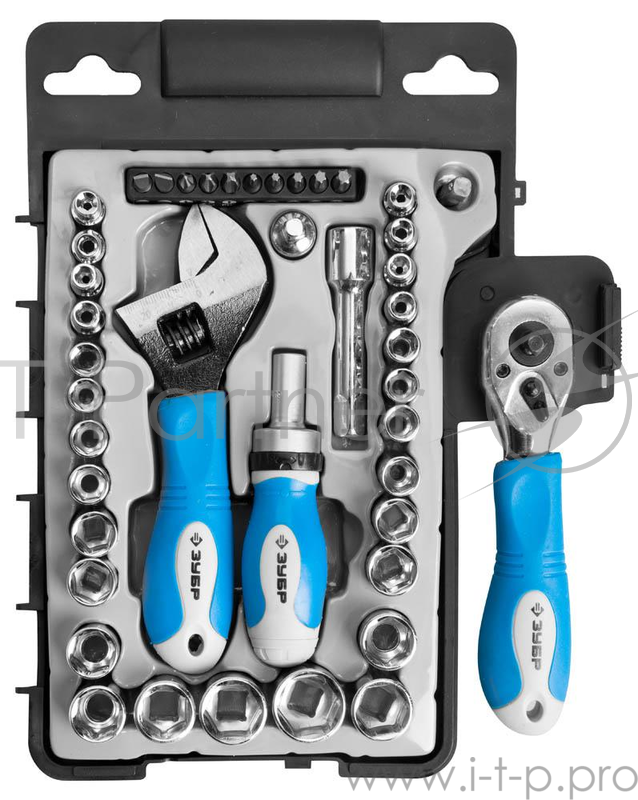Наборы Набор ЗУБР Слесарно-монтажный инструмент "ЭКСПЕРТ" (25290-H43), ключ развод.,отвертка реверс. с насадками, пласт.бокс, 43пред.