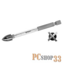Буры,сверла,долото Сверло по кафелю, керамике, стеклу, с четырьмя режущими лезвиями, шестигранный хвостовик, 6 мм, ЗУБР "ПРОФЕССИОНАЛ" 29845-06 29845-06_z01