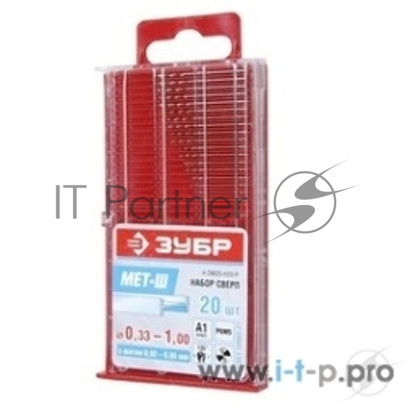 Буры,сверла,долото Набор ЗУБР "ЭКСПЕРТ": Свёрла по металлу, цилиндр. хвостовик, быстрорежущая сталь Р6М5, для печатной платы, 0,33-1мм, 20шт 4-29625-H20-P