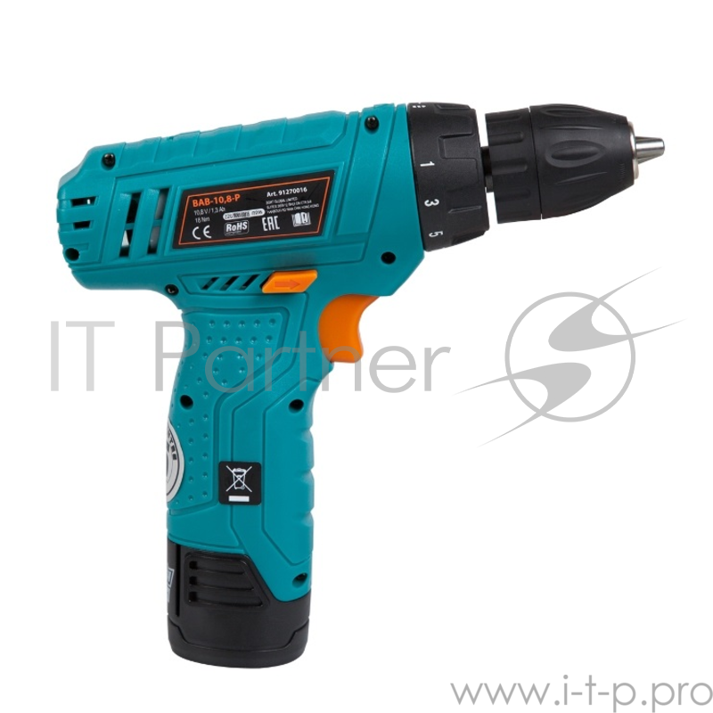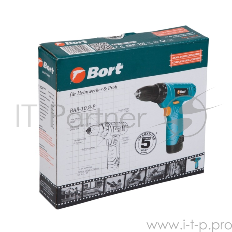 Дрели, Шуруповерты, Гайковерты, Миксеры Bort BAB-10,8-P Дрель-шуруповерт аккумуляторная 91270016 { 10,8 В, 1.3 Ач, Li-lon, 1 Акк, 18 Нм, 550 об/мин, БЗП, 0,8 кг, коробка, ЗУ }