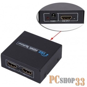 Переходник ORIENT HDMI Splitter HSP0102N, 1-2, HDMI 1.4/3D, HDTV1080p/1080i/720p, HDCP1.2, внешний БП-зарядник 1xUSB 5В/1A, метал.корпус (30460)