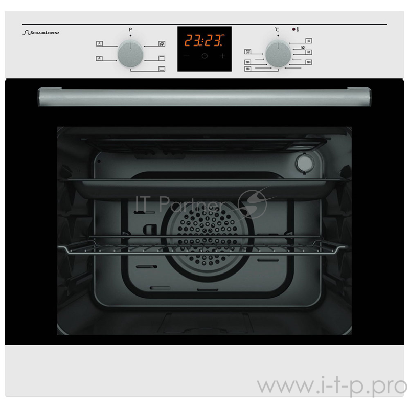 Встраиваемая электрическая духовка Schaub Lorenz 59.5х59.5x61 см, 61л, 6 режимов работы, механические переключатели, цифровой таймер с напоминанием, белая