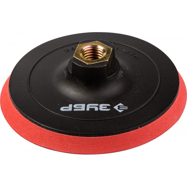Щетки для дрелей Тарелка опорная ЗУБР "МАСТЕР" пластиковая для УШМ под круг на липучке, мягкая полиуретановая прокладка, d 115 мм, М14