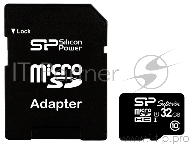 Флеш карта microSDHC 32Gb Class10 Silicon Power SP032GBSTHDU1V10-SP + adapter UHS-I 90Mb/s