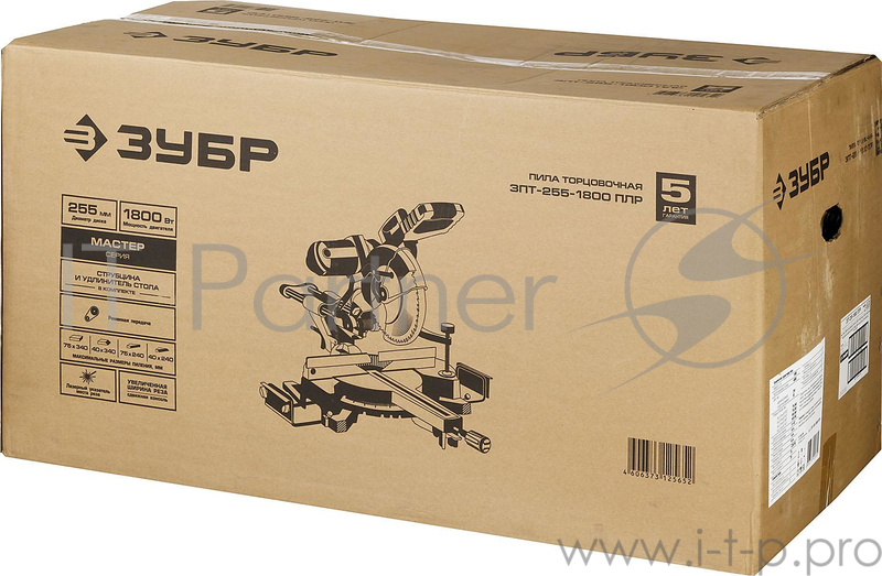 Пила ЗУБР "МАСТЕР" Пила торцовочная ЗПТ-255-1800 ПЛР { с протяжкой, ременная передача, 255мм, 1800Вт, лазер, удлинители стола }