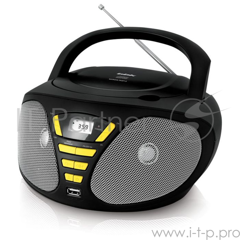 Аудиомагнитола BBK BX180U черный/желтый 2Вт/CD/CDRW/MP3/FM(dig)/USB
