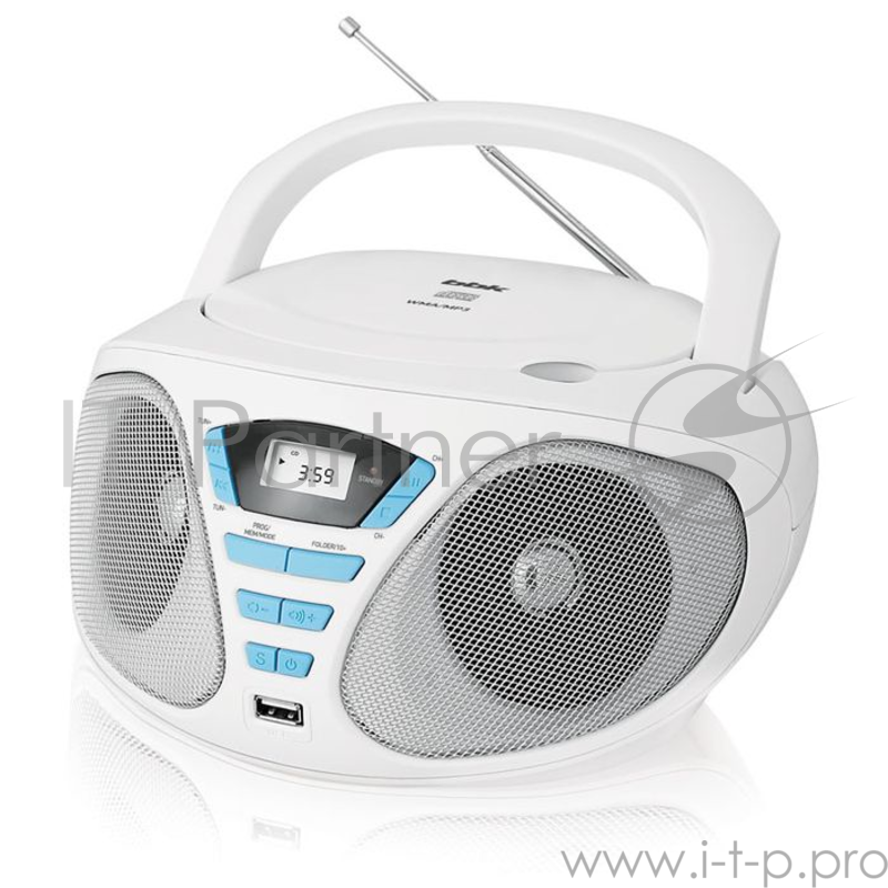 Аудиомагнитола BBK BX180U белый/голубой 2Вт/CD/CDRW/MP3/FM(dig)/USB