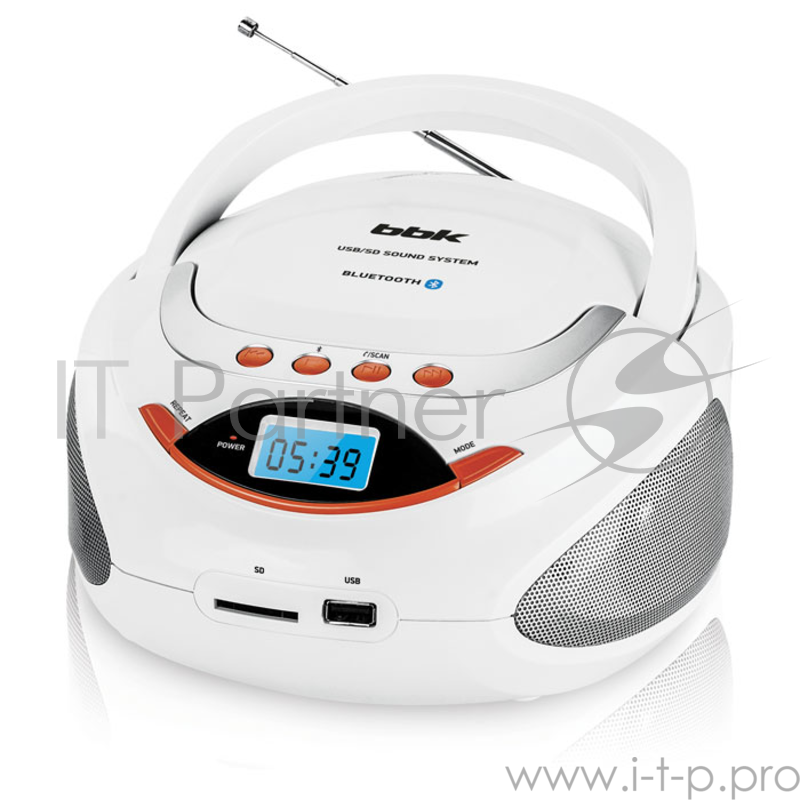 Аудиомагнитола BBK BS09BT белый/оранжевый 3Вт/MP3/FM(dig)/USB/BT