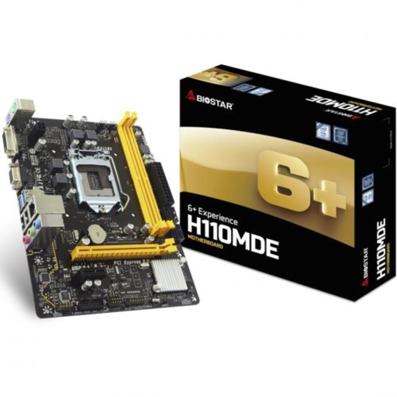H110MDE, Socket 1151, Intel®H110, 2xDDR4-2400, D-SUB+DVI, 1xPCI-Ex16, 2xPCI-Ex1, 4xSATA3, 8 Ch Audio, GLan, (2+2)xUSB2.0, (2+1)xUSB3.1, 2xPS/2, mATX, RTL {20}