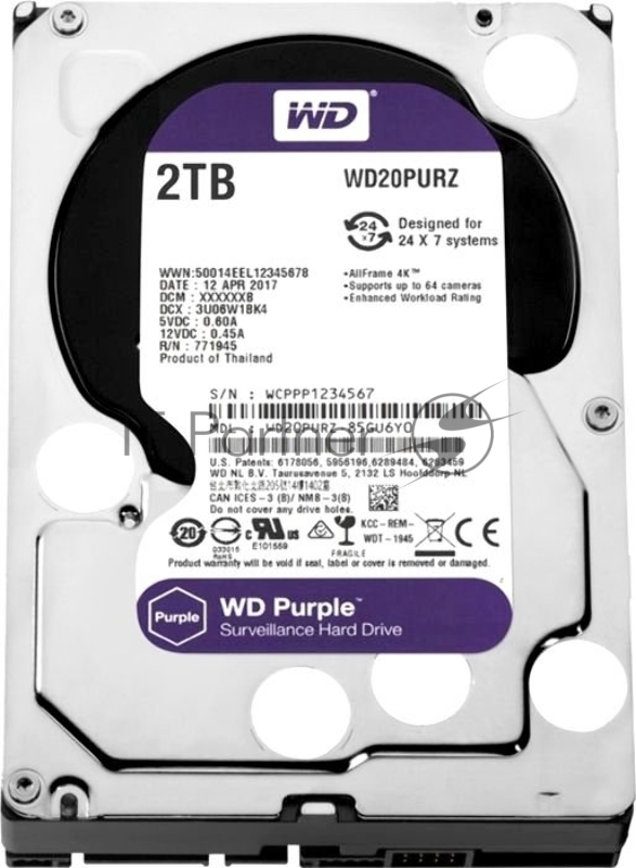 Жесткий диск 2TB WD Purple (WD20PURZ) {Serial ATA III, 5400- rpm, 64Mb, 3.5"}