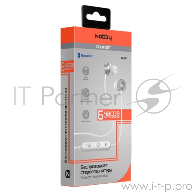 Беспроводная стереогарнитура Nobby Comfort B-110, NBC-BH-42-91, BT 4.2, металлическая, белый